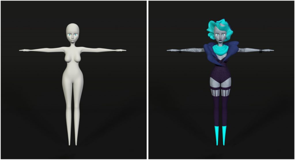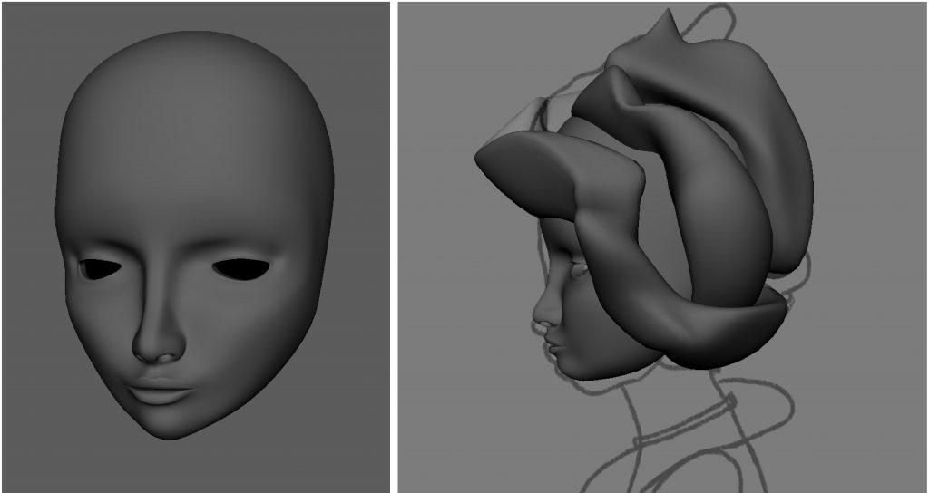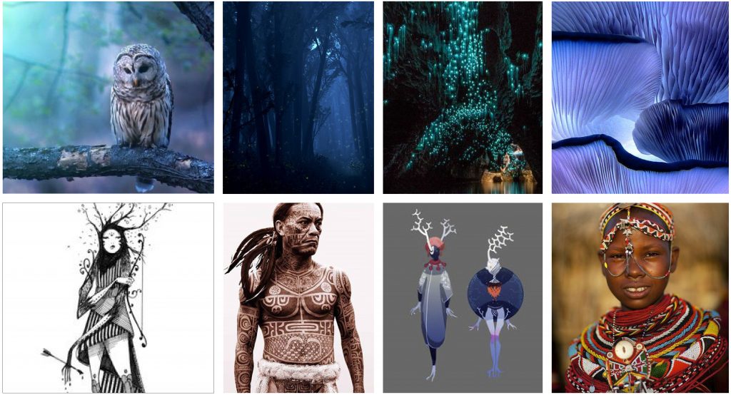 The first step was to create a mood board to get an idea of the atmosphere of Hidayas living environment. I also tried to find out which colour schema fits to the character so that I know which colours I will use for texturing and shading later on.
