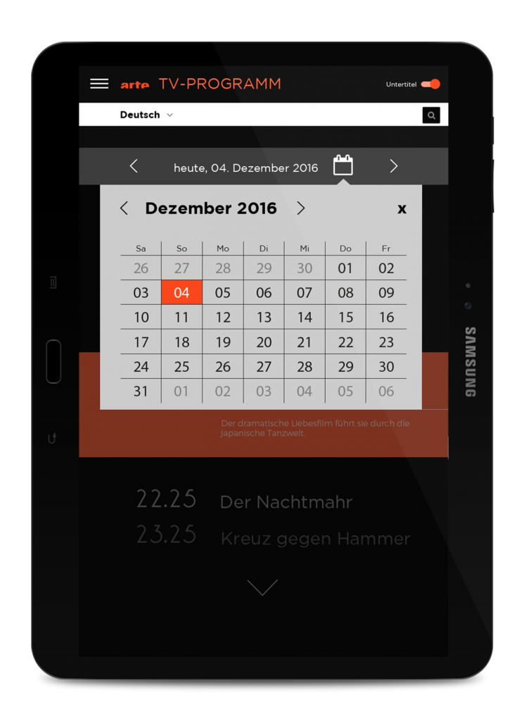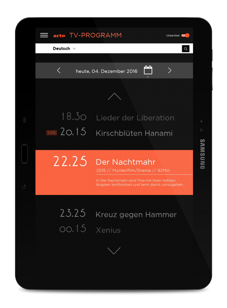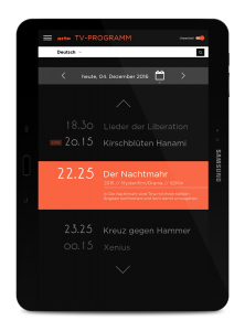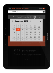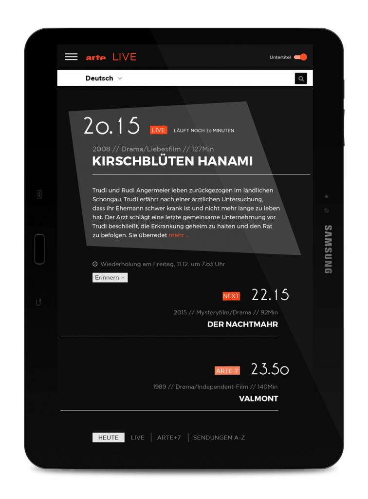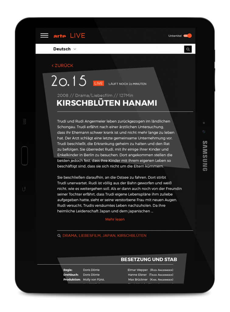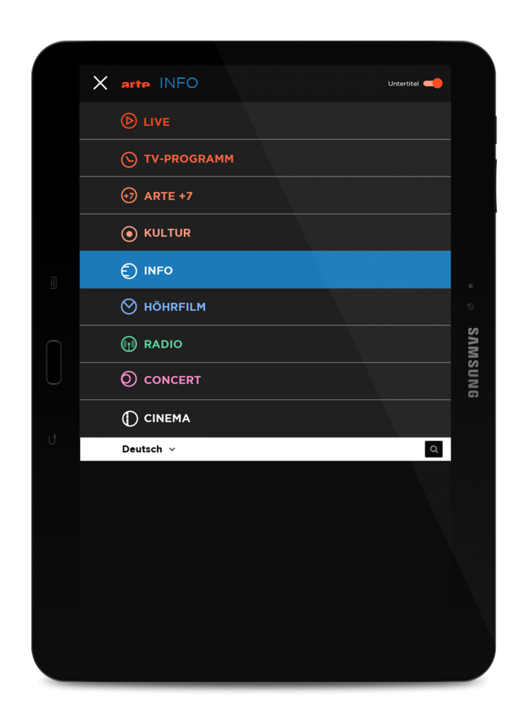 We also took a close look at the Arte website and considered how the style could be transferred to a tablet app and which design elements we wanted to adopt.